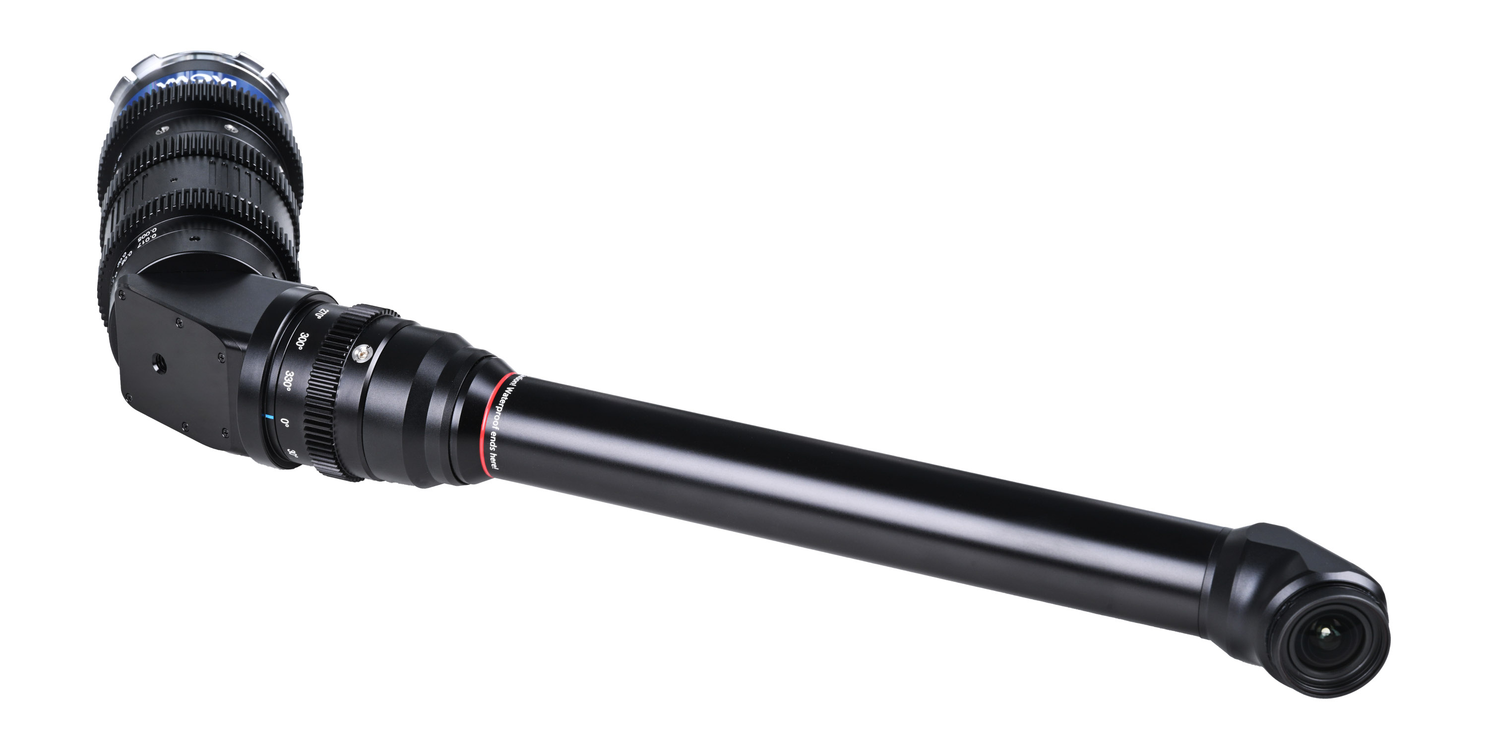 Prezentowany model wyróżnia peryskopowy element optyczny. Zakrzywiona konstrukcja tubusu pozwala filmować obiekty znajdujące się na poziomie gruntu, podczas gdy kamera pozostaje na wygodnej wysokości roboczej. To rewolucyjne rozwiązanie w pracy z małymi zwierzętami, roślinami rosnącymi przy ziemi czy produktami umieszczonymi na niskim poziomie. Dodatkowym atutem jest możliwość obrotu tubusu o pełne 360°, co daje Ci precyzyjną kontrolę nad orientacją kadru. Możesz dostosować perspektywę bez konieczności przemieszczania całego zestawu kamerowego. Aby uzyskać idealną kompozycję wystarczy poluzować pierścień i obrócić tubus we właściwym kierunku.