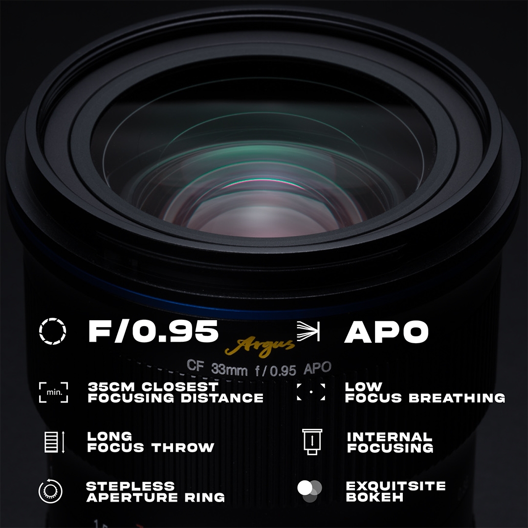 Główne cechy obiektywu Venus Optics Argus 33 mm f/0,95 APO CF do Sony E