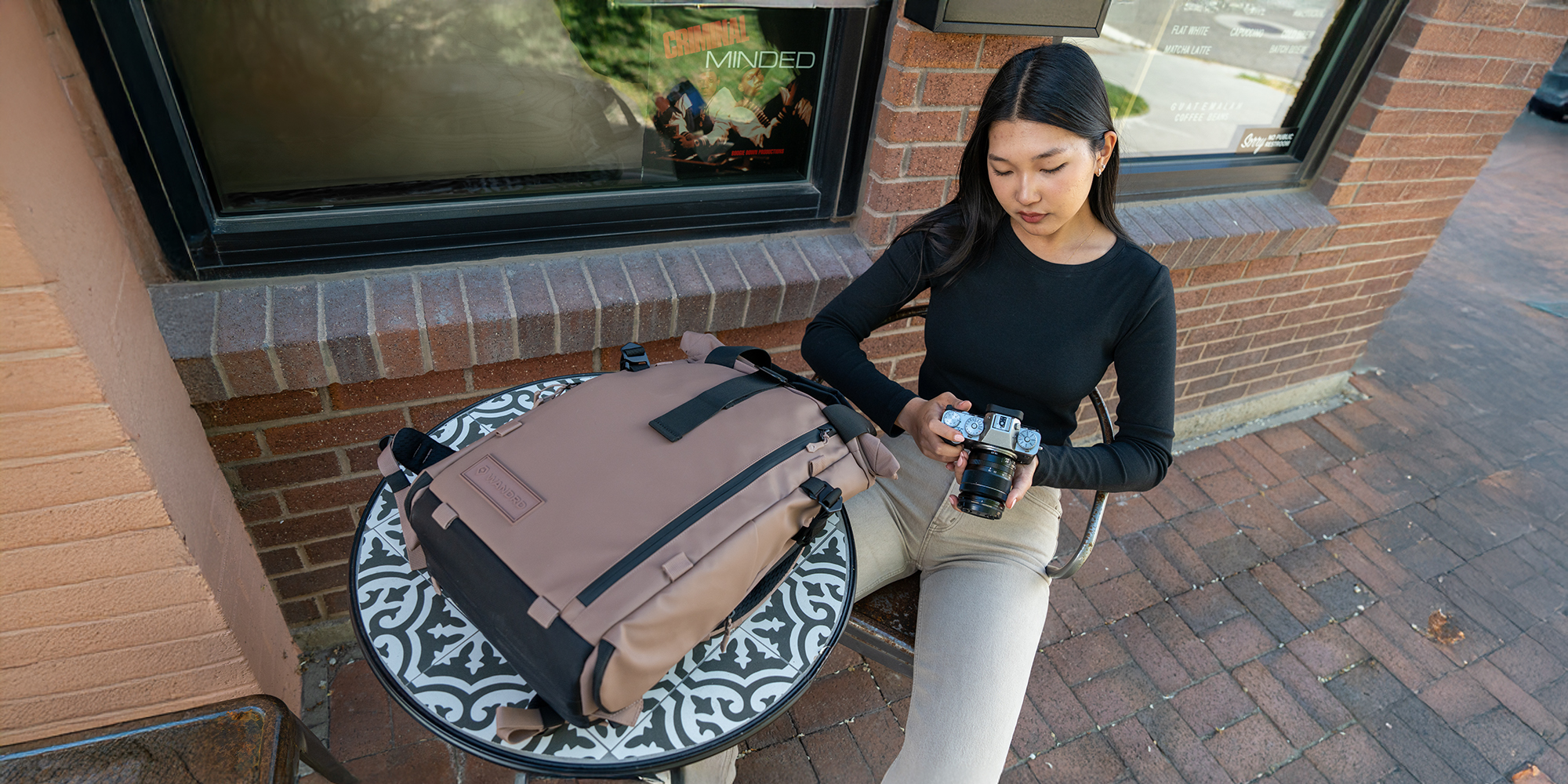 Wandrd Prvke 21 Photo Bundle v4 to gotowy zestaw dla fotografów i filmowców, którzy chcą mieć wszystko pod ręką. Razem z plecakiem otrzymujesz wysokiej klasy wkład fotograficzny Camera Cube Essential, który zapewnia bezpieczne i uporządkowane przechowywanie sprzętu, oraz dwa paski do troczenia. Szybki dostęp z boku plecaka – teraz głębszy i wygodniejszy – pozwala błyskawicznie sięgnąć po sprzęt, gdy liczy się każda sekunda. Nowa konstrukcja górnej kieszeni eliminuje zbędne przeszkody, a rozkładana przegroda pozwala jednym ruchem zmienić wnętrze z podzielonego na jedną dużą komorę.