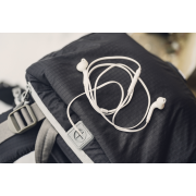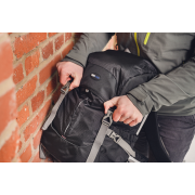 Na pleckach znajduje się komora, która pomieści laptopa z ekranem o przekątnej 14". Tuż nad nią znajdziemy małą kieszonkę, w której możemy schować telefon lub odtwarzacz MP3, a kabel wraz z słuchawkami przeciągnąć przez mały otwór.