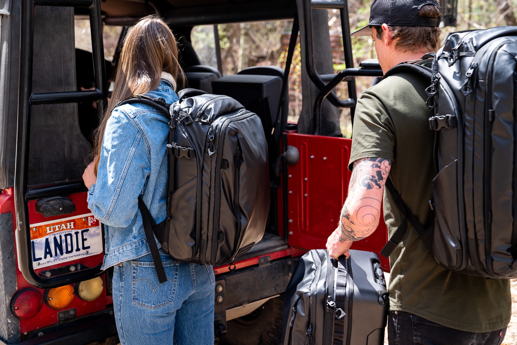 Podczas podróży towarzyszy Ci również walizka na kółkach? Z plecakiem Wandrd Transit Travel Backpack stworzy ona duet idealny. Specjalny pasek umożliwi wygodny montaż na rozkładanym uchwycie walizki, zapewnią Ci jeszcze większy komfort podczas przemieszczania się. Plecak zamocujesz w pozycji horyzontalnej, co dodatkowo poprawi stabilność całego bagażu. Dzięki temu możesz swobodnie poruszać się po lotnisku lub dworcu, wykorzystując kółka zainstalowane w walizce.