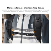 Na lewej szelce znajdziesz wygodną kieszeń na okulary przeciwsłoneczne – wystarczy jeden ruch, by po nie sięgnąć, bez zdejmowania plecaka. Prawa szelka oferuje dodatkową przestrzeń na podręczne przedmioty, takie jak klucze, dekielek do obiektywu, chusteczki czy mały powerbank. Te pozornie niewielkie detale znacząco ułatwiają pracę w dynamicznych warunkach.