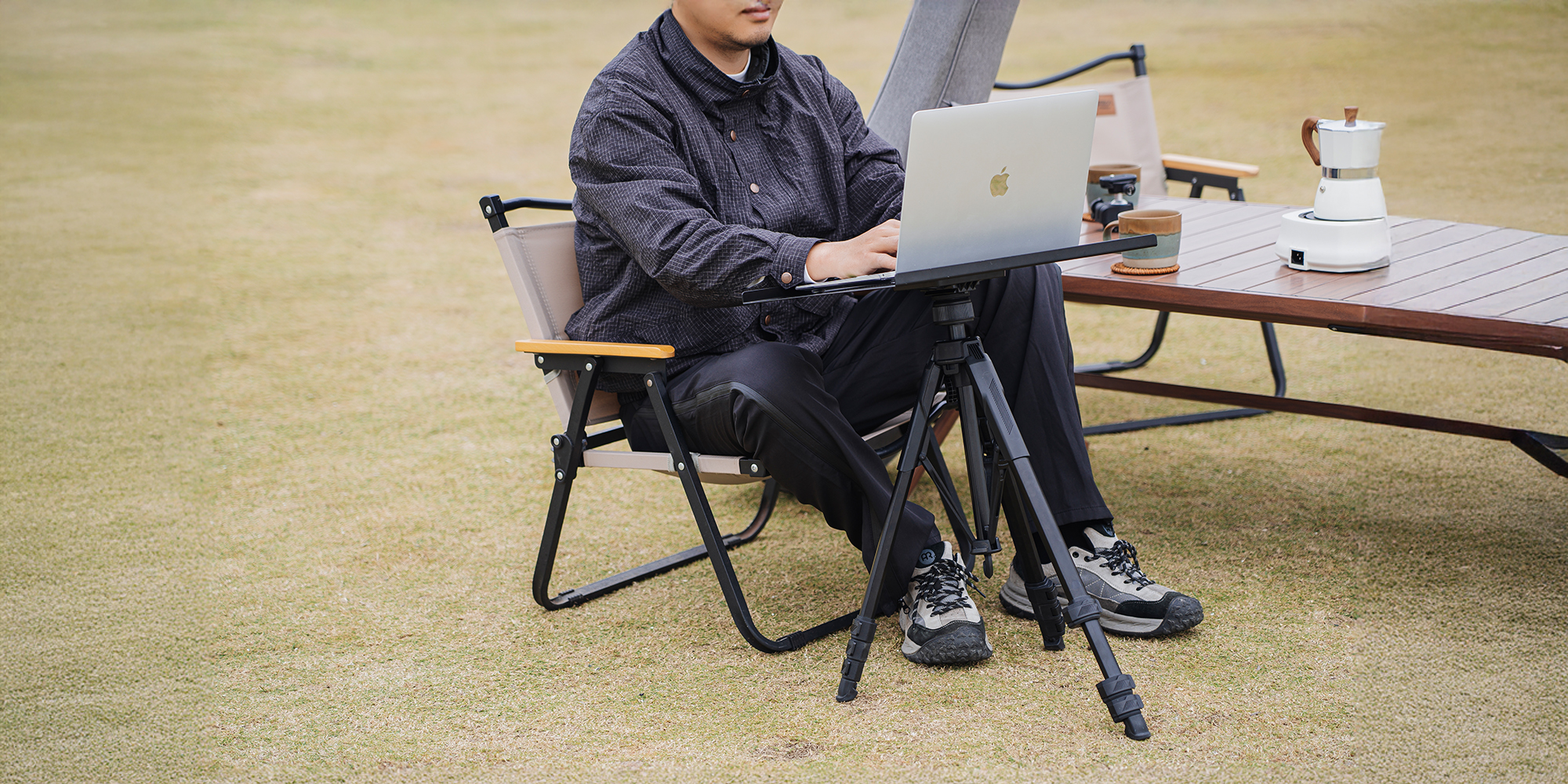 Pracujesz zdalnie, podróżując kamperem? Nagrywasz podcasty w plenerze? A może nadajesz na żywo z festiwalu lub wydarzenia sportowego? Stolik Goocong 2.0 bez problemu utrzyma laptopa, mikser audio, mikrofon, tablet, projektor lub zestaw podręcznych akcesoriów, które towarzyszą Ci podczas pracy. To solidna baza pod każdy mobilny setup, która zapewnia komfort, jakiego często brakuje w improwizowanych warunkach pracy.