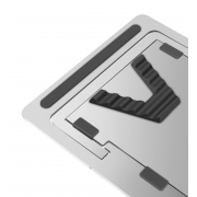 Bezpieczeństwo Twojego laptopa to kolejny priorytet. Wyposażona w silikonowe podkładki antypoślizgowe, podstawka gwarantuje stabilne ułożenie urządzenia, zapobiegając jego przesuwaniu się podczas użytkowania. Solidna konstrukcja z aluminium zapewnia nie tylko elegancki wygląd, ale także wytrzymałość na długie lata. Podstawka jest kompatybilna z laptopami o średnicy od 11 do 15,6 cali, a także z tabletami, zeszytami oraz książkami, co czyni ją wszechstronnym narzędziem, które odnajdzie się na każdym biurku.