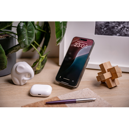 Power Bank Newell MS-10000 Pro pozwoli Ci skutecznie wykorzystać potencjał trybu czuwania, który oferuje system iOS. Funkcja automatycznie aktywuje się, gdy Twój iPhone zostanie połączony z power bankiem za pomocą złącza MagSafe i ustawiony w poziomie. W tym trybie Twoje urządzenie zamienia się w centrum informacji, wyświetlając na ekranie zegar, powiadomienia, kalendarz lub inne ważne dla Ciebie informacje. Tryb czuwania pozwala również wykorzystać iPhone'a w charakterze cyfrowej ramki do zdjęć, dzięki czemu możesz cieszyć się ulubionymi fotografiami, za każdym razem, gdy spojrzysz na ekran. To idealne rozwiązanie, kiedy telefon towarzyszy Ci na biurku lub nocnym stoliku.