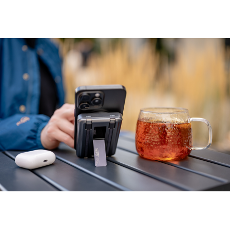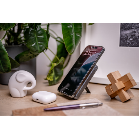 Bezprzewodowe ładowanie MagSafe to wygoda w najczystszej formie. Wystarczy zbliżyć kompatybilny smartfon, a magnesy same ustawią go w idealnej pozycji. Żadnych plączących się kabli – po prostu "klik" i gotowe. Zastosowany standard ładowania Qi umożliwia również bezprzewodowe uzupełnianie energii w smartwatchach Apple i Huawei, oraz słuchawkach TWS (True Wireless) zgodnych z tą technologią. Jedno źródło energii obsłuży wszystkie gadżety, które towarzyszą Ci na co dzień.