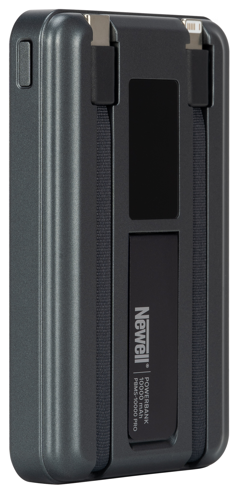 Dwukierunkowy port USB-C jaki oferuje model Newell MS-10000 Pro umożliwia zarówno ładowanie power banku, jak i zasilanie innych urządzeń. To praktyczne rozwiązanie, gdy potrzebujesz podłączyć sprzęt wymagający przewodu w innym standardzie, niż oferują zintegrowane kable. Port USB-C pozwoli też doładować trzecie urządzenie równolegle z pozostałymi.