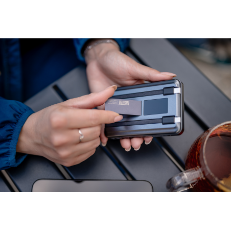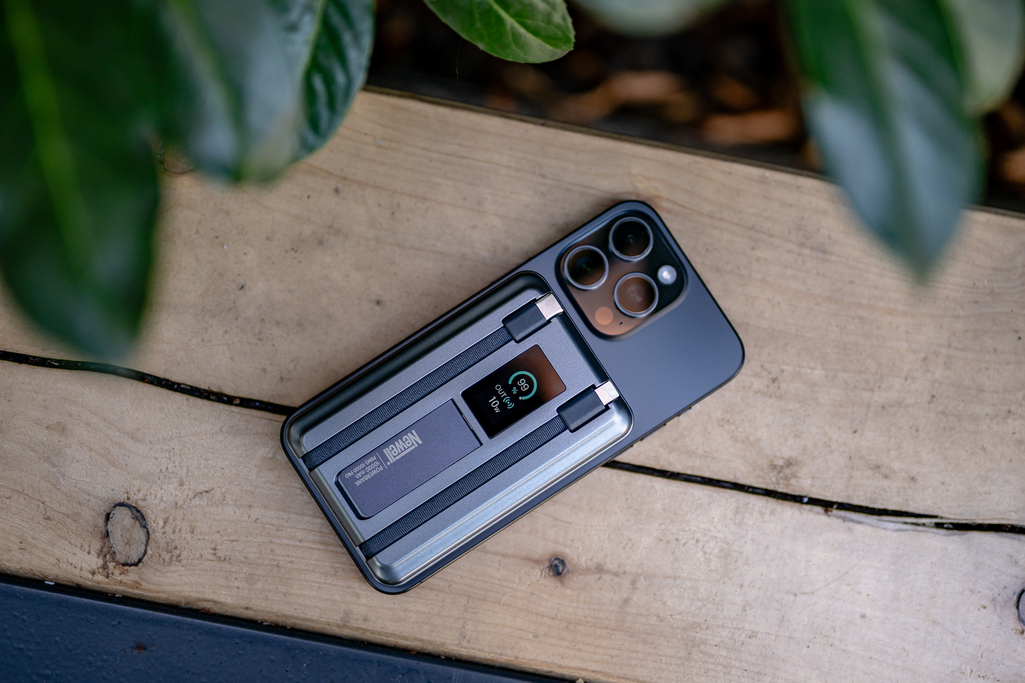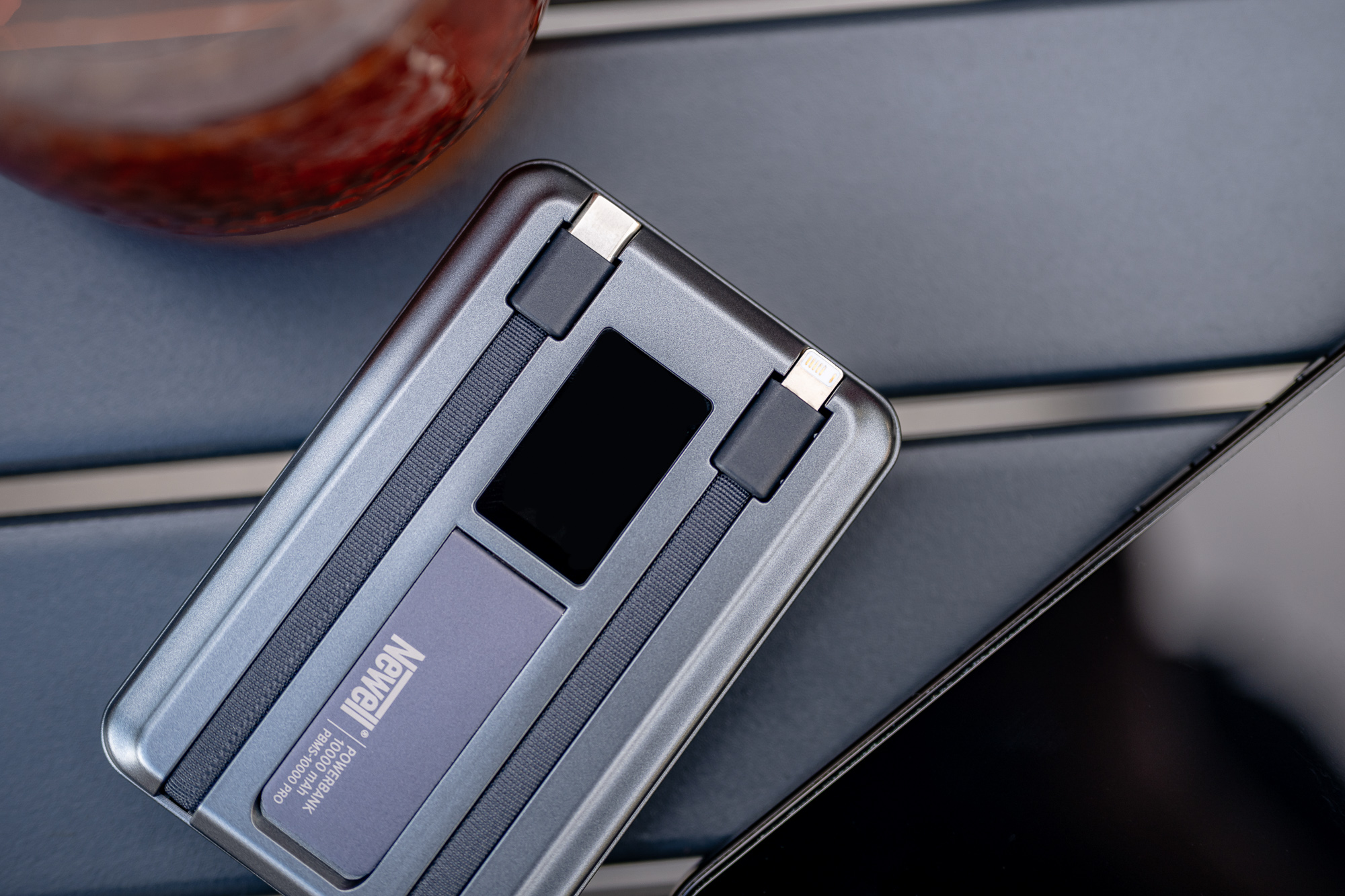 W obudowie Newell MS-10000 Pro MagSafe sprytnie ukryto dwa kable, umieszczone w precyzyjnie dopasowanych slotach. Dzięki temu nie plączą się, nie wystają i nie zajmują dodatkowego miejsca, a całość zachowuje estetyczny wygląd. Gdy potrzebujesz naładować urządzenie, po prostu wysuń kabel i podłącz go do swojego sprzętu. To proste i praktyczne rozwiązanie, które eliminuje bałagan w torbie i gwarantuje, że dwa kable (USB-C oraz Lightning), pasujące do setek popularnych urządzeń, będą zawsze pod ręką.