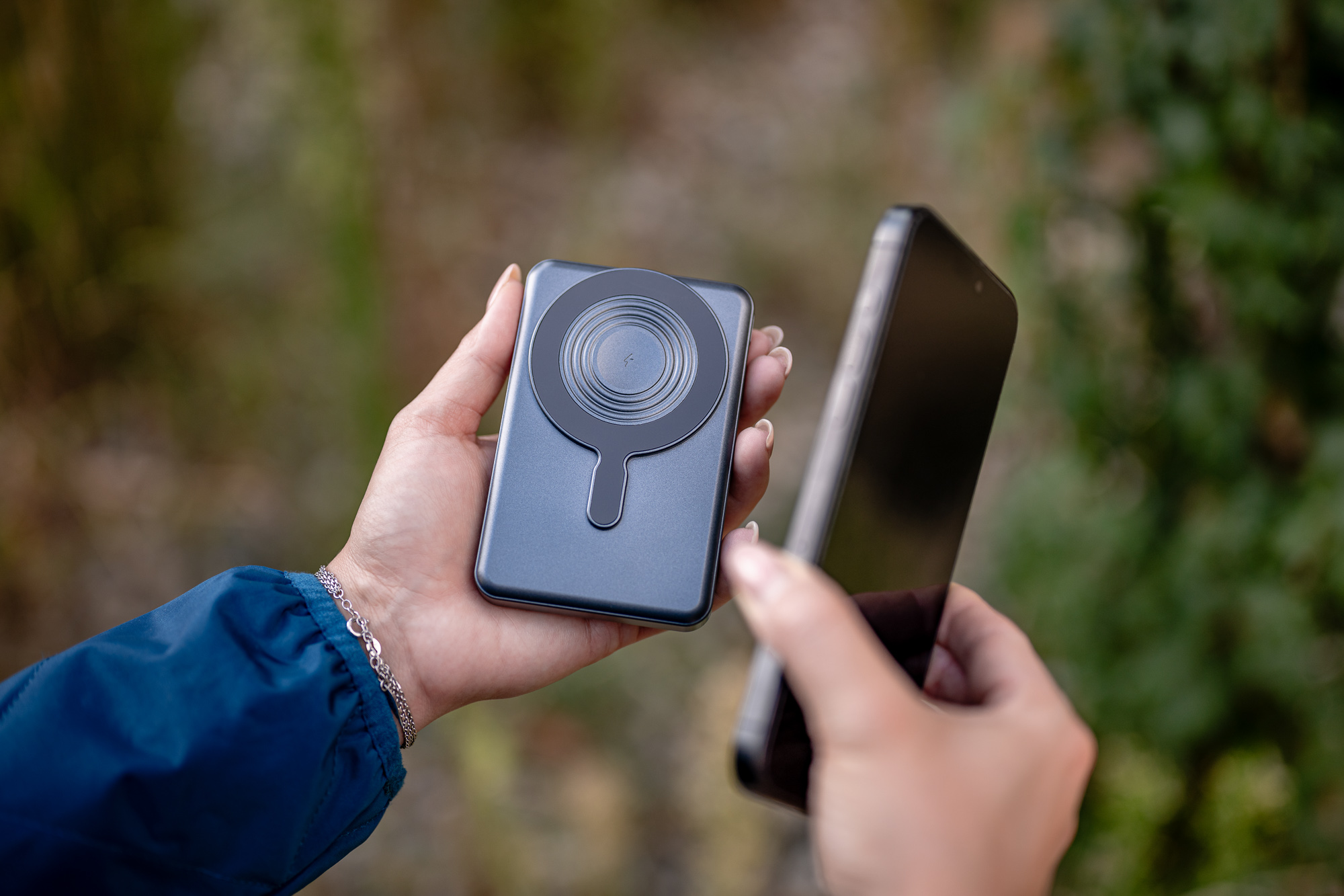 Bezprzewodowe ładowanie MagSafe to wygoda w najczystszej formie. Wystarczy zbliżyć kompatybilny smartfon, a magnesy same ustawią go w idealnej pozycji. Żadnych plączących się kabli – po prostu "klik" i gotowe. Zastosowany standard ładowania Qi umożliwia również bezprzewodowe uzupełnianie energii w smartwatchach Apple i Huawei, oraz słuchawkach TWS (True Wireless) zgodnych z tą technologią. Jedno źródło energii obsłuży wszystkie gadżety, które towarzyszą Ci na co dzień.