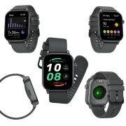 - prostokątny smartwatch z dużym ekranem, GPS i funkcjami zdrowotnymi