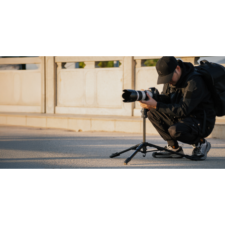 Nogi każdej z 4 sekcji statywu Goocong Creator Max rozkładają się szybko i precyzyjnie dzięki sprawdzonemu systemowi zacisków "flip-lock". Ergonomicznie wyprofilowane rurki nie tylko świetnie leżą w dłoni, ale też ułatwiają przenoszenie i manewrowanie statywem w terenie. Zakres wysokości od 41 cm do 164,5 cm pozwala ustawić kadr dokładnie tak, jak chcesz – niezależnie od tego, czy robisz zdjęcie przy samej ziemi, czy nagrywasz relację z poziomu oczu.