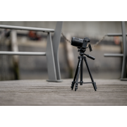 Nogi statywu zostały wyposażone w wygodny system zacisków oraz antypoślizgowe nakładki zapewniające stabilność na różnych powierzchniach. Dodatkowym udogodnieniem jest głowica 3D wyposażona w szybkozłączkę. Umożliwia ona błyskawiczne zamocowanie aparatu i ustawienie precyzyjnego kadru.