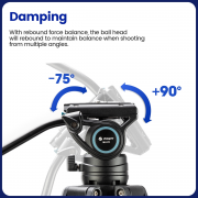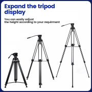 Głowica, jaką oferuje statyw video Fotopro DV-3 oferuje dwie płynnie działające osie pracy – pochyłu oraz panoramowania. Obie wyposażono w niezależne blokady, dzięki którym żaden przypadkowy ruch nie zakłóci zaplanowanego ujęcia. W celu poprawy komfortu użytkowania oś pochyłu wyposażona została również w regulowany system równoważenia kamery. W zależności od ciężaru wykorzystywanego sprzętu perfekcyjnie dopasujesz opór ruchów, ułatwiając tym samym wygodną kontrolę pracy urządzenia. Długa rączka zakończona antypoślizgowym uchwytem, którą można zainstalować po lewej i po prawej stronie głowicy, pomaga precyzyjnie zarządzać ruchami kamery. Można ją również szybko zdemontować na czas transportu. Posiada również regulowaną długość.