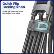 Trzy sekcje nóg statywu video Fotopro DV-3A blokowane są za pomocą niezawodnego i szybkiego w użyciu systemu zaciskówFlip-lock. Takie rozwiązanie pozwoli w ciągu kilku sekund precyzyjnie dostosować ich długość do bieżących potrzeb i szybko przygotować się do pracy z kamerą lub aparatem. W zależności od potrzeb wysokość robocza statywu może wynieść od 88 cm do 184 cm. Zakres ten umożliwi tworzenie kreatywnych ujęć z różnej perspektywy.
