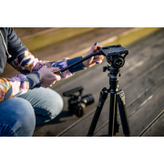 Głowica olejowa, jaką oferuje statyw Fotopro S5i Pro oferuje dwie płynnie działające osie pracy – pochyłu oraz panoramowania. Obie wyposażono w niezależne blokady, dzięki którym żaden przypadkowy ruch nie zakłóci zaplanowanego ujęcia. Oś pochyłu pozwala kontrolować aparat w zakresie 165º (75º w górę i 90º w dół). W zależności od ciężaru wykorzystywanego sprzętu możesz odpowiednio dopasować opór. Długa rączka zakończona antypoślizgowym uchwytem, którą można zainstalować po lewej i po prawej stronie głowicy, pomaga precyzyjnie zarządzać ruchami kamery lub aparatu.