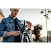 X-Aircross 3 Video to przedstawiciel kolejnej generacji doskonale przyjętych statywów od Fotopro. Urządzenie charakteryzuje się ultralekkością i wszechstronnością. Wariant z dopiskiem "Video" wyposażono w funkcjonalną głowicę filmową. Dzięki niej możesz jeszcze lepiej kontrolować ruchy aparatu w obrębie osi pochyłu oraz panoramowania. 5-sekcyjne nogi zostały wykonane z trwałego włókna węglowego 3K. Statyw idealnie sprawdzi się wśród filmowców, streamerów, vlogerów i podróżników. Oferuje on od 16,8 do 150,8 cm wysokości roboczej. Możliwość demontażu kolumny centralnej pozwoli Ci filmować niemal przy samej ziemi. Statyw wyposażono w 2 gwinty 1/4", hak oraz gumowe antypoślizgowe nóżki. Wewnątrz kolumny centralnej ukryto też uchwyt na smartfon.