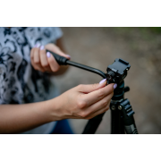 Głowica, którą otrzymasz razem ze statywem X-Aircross 3 Lite Video, oferuje dwie płynnie działające osie – pochyłu oraz panoramowania. Dzięki niezależnym blokadom masz pewność, że żadne przypadkowe ruchy nie zakłócą planowanego ujęcia. Długa rączka z antypoślizgowym uchwytem umożliwi precyzyjne sterowanie kamerą lub aparatem.
