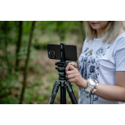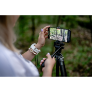 W zestawie ze statywem Fotopro X-Aircross 3 Lite Video znajdziesz praktyczny uchwyt na smartfon. Ukryto go wewnątrz kolumny centralnej, w specjalnej zakręcanej skrytce. Uchwyt jest kompatybilny z płytką szybkiego montażu, co pozwala błyskawicznie połączyć go z głowicą. Regulowany zacisk zapewnia kompatybilność z większością popularnych smartfonów.