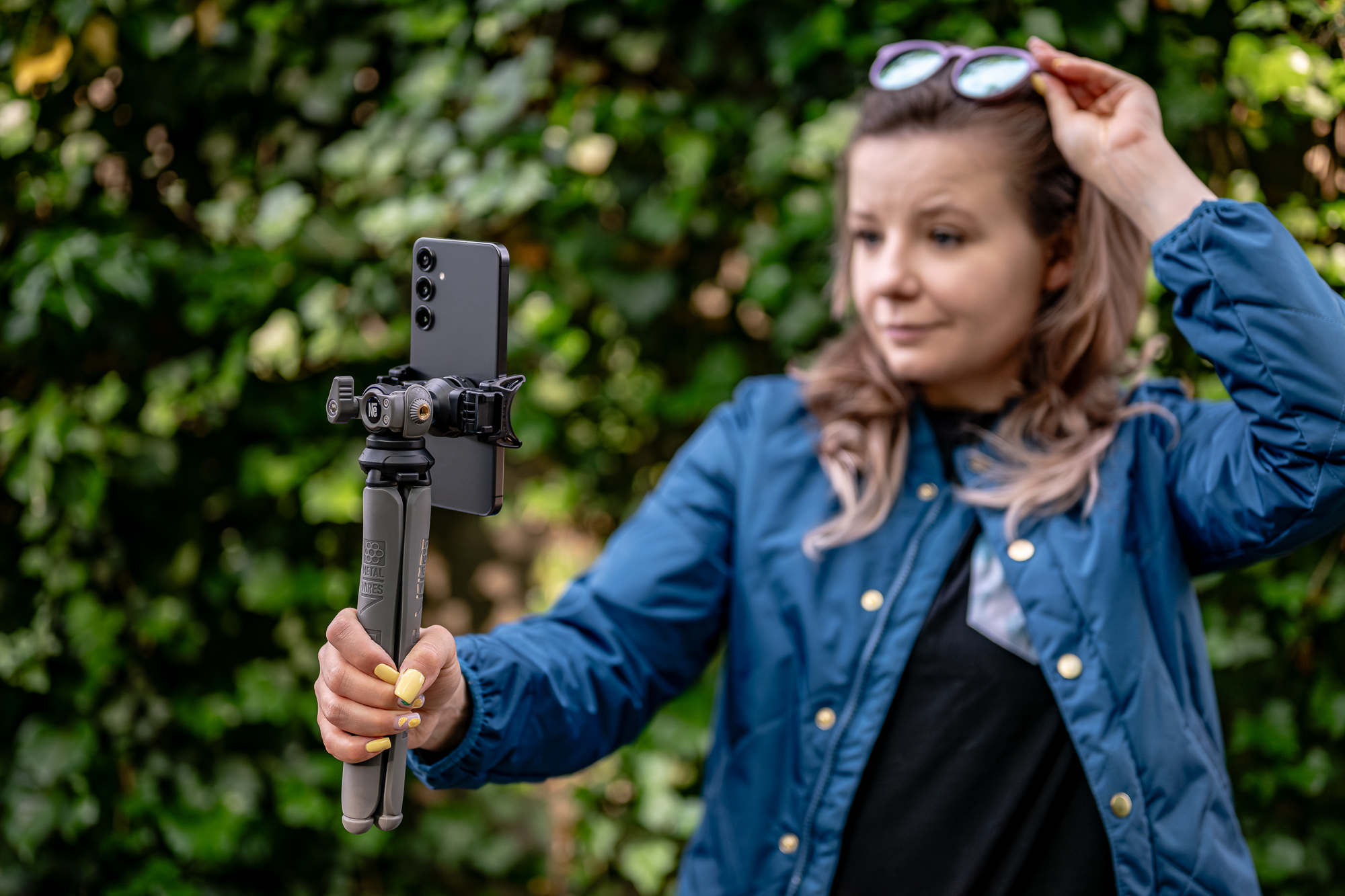 Newell Torsio został zaprojektowany z myślą o potrzebach współczesnych twórców treści. Zintegrowany uchwyt na smartfon sprawia, że nie musisz sięgać po dodatkowe adaptery – wystarczy kilka sekund i jesteś gotowy(-a) do nagrania. Dwa dodatkowe mocowania – zimna stopka i gwint 1/4" – pozwalają połączyć ze statywem mikrofon lub lampę, tworząc kompaktowy i funkcjonalny setup do vlogów lub streamów. Ta mobilna konstrukcja oferuje wszystko, czego potrzebujesz.