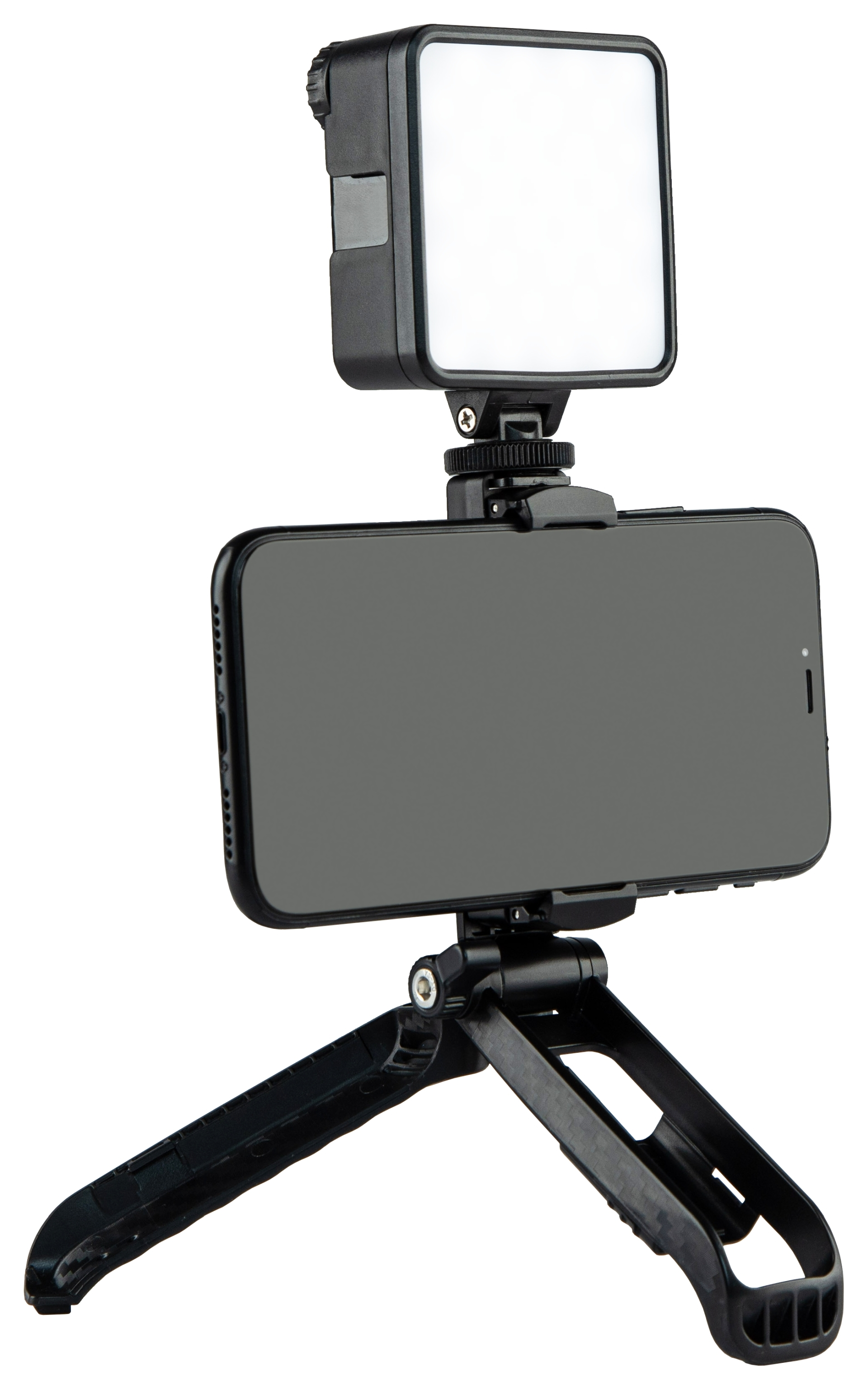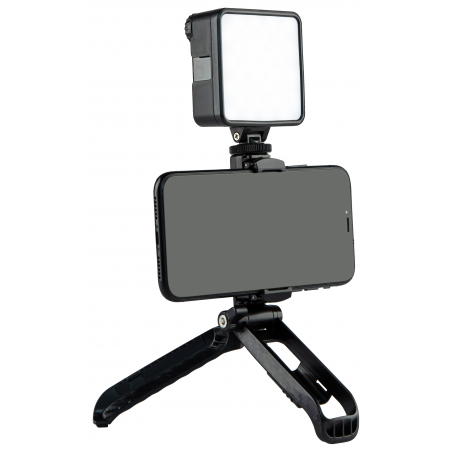 - kompaktowy statyw do smartfona z funkcją uchwytu ręcznego i podstawki