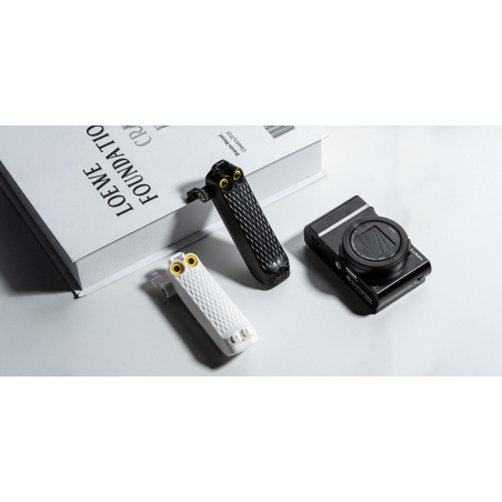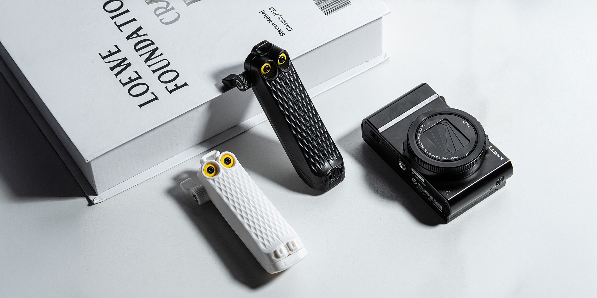 Statyw Goocong S2 Mini swoim wyglądem przypomina sowę i kryje w sobie przemyślane rozwiązania. Teksturowane nóżki przypominające skrzydła zapewniają pewny chwyt, gdy trzymasz go w dłoniach. Unikalnego charakteru dodają też „oczy” umieszczone u góry. Na pokładzie nie zabrakło też miejsca, w którym możesz przyczepić smycz lub pasek nadgarstkowy.