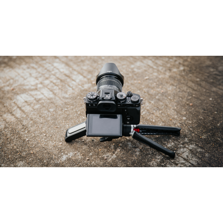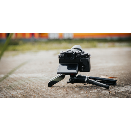 Dzięki przemyślanej konstrukcji nogi statywu możesz rozstawić na 2 sposoby – klasycznie lub bardzo szeroko (np. do ujęć z niskiej perspektywy). Po złożeniu cały statyw posłuży jako rączka, którą wykorzystasz podczas vlogowania. Uchwyt, w którym ukryto mocowanie na smartfon to kolejny element, za który możesz chwycić, aby zapewnić sobie stabilne ujęcia. Taka wszechstronność pozwala przejść od zdjęcia makro do ujęcia „z ręki” w kilka sekund, bez konieczności sięgania po dodatkowe akcesoria. To idealne narzędzie do dynamicznej i kreatywnej pracy – zarówno z aparatem, jak i smartfonem.
