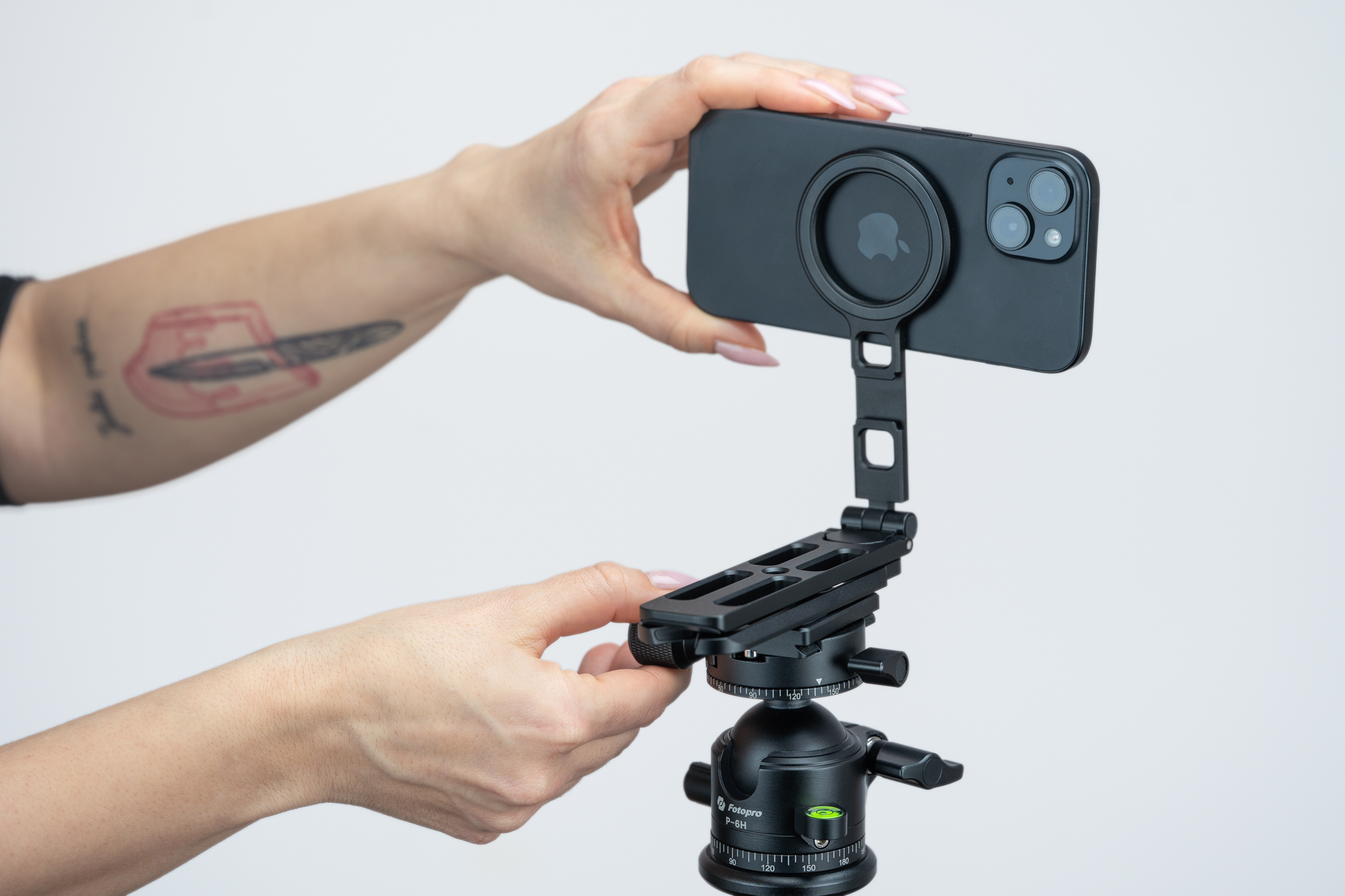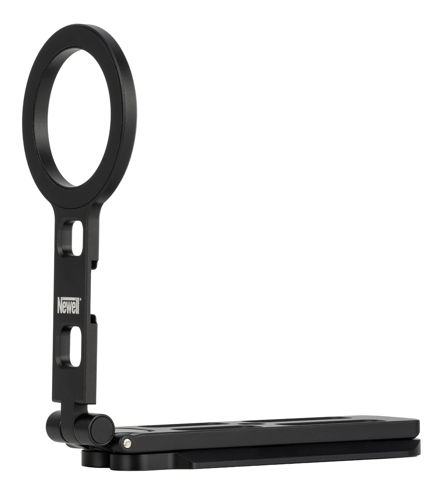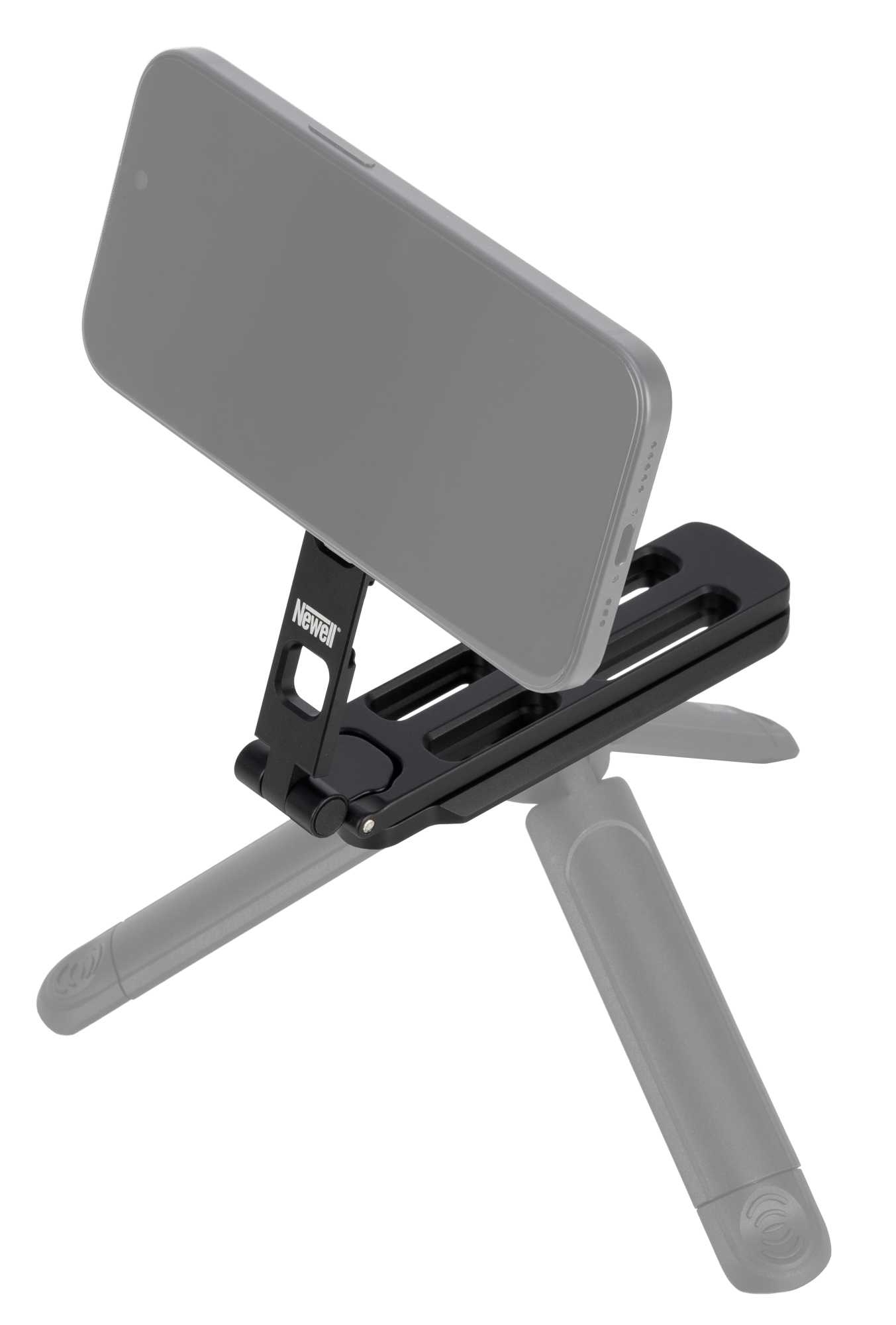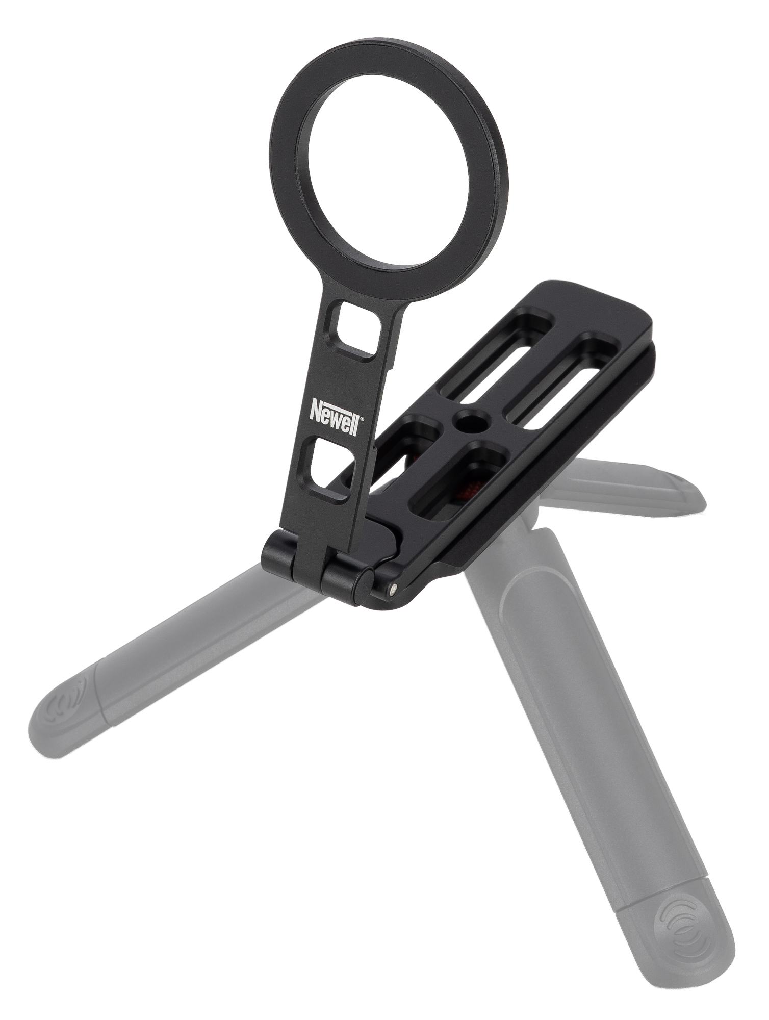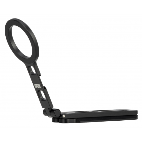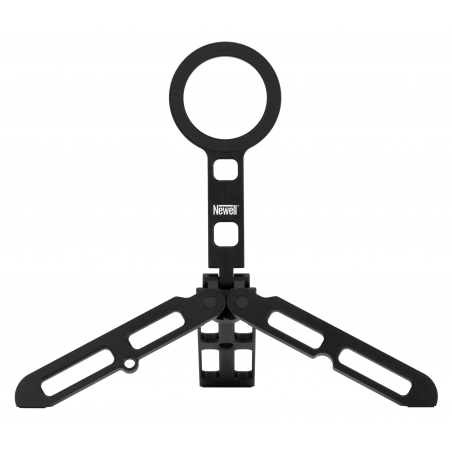 Po złożeniu wszystkich nóżek statyw Newell MagSafe M-Stand zmienia się w kompaktową szynę w standardzie Arca-Swiss z odchylanym pierścieniem MagSafe. To rozwiązanie, które docenisz szczególnie wtedy, gdy często pracujesz na statywach i głowicach foto-video wspierających ten standard. W praktyce wystarczy wsunąć M-Stand w zacisk i zablokować – bez dodatkowych płytek, bez kombinowania z adapterami i bez dokładania kolejnych elementów do zestawu. Dzięki temu możesz błyskawicznie przełączać się między ujęciami z ręki a pracą na statywie, zachowując porządek, szybkość działania i najlepszą ergonomię.