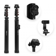 Ulanzi TB64Z to wszechstronny statyw i selfie stick w jednym – stworzony z myślą o twórcach, którzy chcą być gotowi do działania w każdej sytuacji. Dzięki kompaktowej długości transportowej (50,8 cm) i wadze ok. 800 g, idealnie sprawdza się w podróży. Trzysekcyjna kolumna umożliwia regulację wysokości od 61 do 160 cm. Uchwyt na smartfon pozwala na filmowanie w pionie i poziomie. Statyw wyposażono w zimną stopkę i gwint 1/4”, co daje możliwość rozbudowy zestawu o mikrofon czy lampkę LED. Dołączony uchwyt na telefon (57–92 mm) oraz pilot Bluetooth (do 15 m zasięgu) zapewniają wygodę i niezależność w każdej sytuacji.