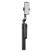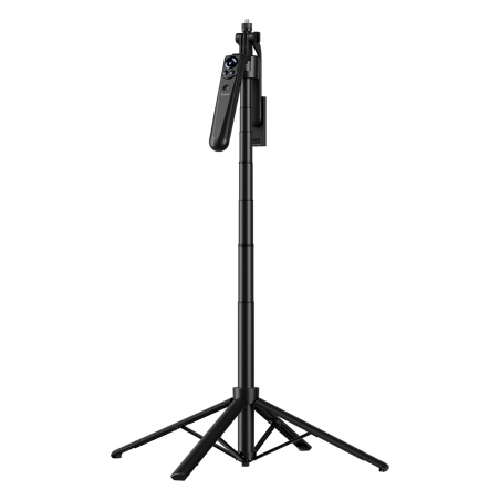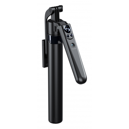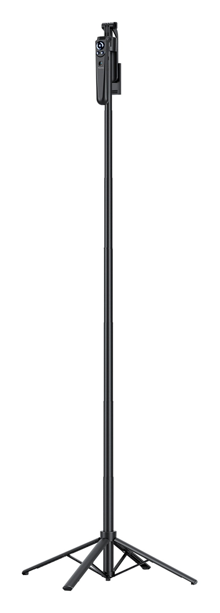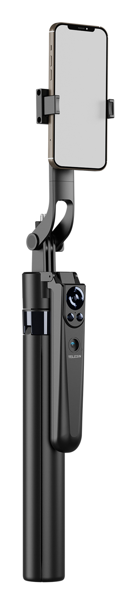 Telesin P3-MS-03 to inteligentny statyw z elektroniczną głowicą. Specjalny moduł z kamerą rozpoznaje twarz, automatycznie śledzi wybraną osobę i utrzymuje ją w kadrze. Głowica porusza się w obrębie osi panoramowania w lewo lub w prawo. Gest złączonych palców uruchamia śledzenie, gest otwartej dłoni je zatrzymuje. Pilot Bluetooth o zasięgu do 9 metrów umożliwia sterowanie najważniejszymi funkcjami aparatu w smartfonie. Odchylany uchwyt na smartfon pozwala filmować w pionie lub poziomie. Na szczycie głowicy znajdziesz też gwint 1/4", gdzie w łatwy sposób zainstalujesz aparat lub kamerę sportową. Statyw oferuje do 162 cm wysokości. Po złożeniu cała konstrukcja mierzy jedynie 31,7 cm. W zestawie etui transportowe i kabel do ładowania.