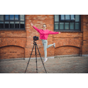 Trójnóg z powodzeniem poradzi sobie ze sprzętem o masie do 2,5 kg, dzięki czemu zainstalujesz na nim nie tylko popularne smartfony i kamerki sportowe, ale również lekkie bezlusterkowce z niewielkimi obiektywami. Jego maksymalna wysokość robocza, wynosząca 136,5 cm zapewni wygodne kadrowanie, szczególnie podczas realizowania domowych vlogów lub streamów. Aluminiowe nogi zakończone antypoślizgowymi stopkami gwarantują wyjątkową stabilność oraz wytrzymałość. Ich 4 rozkładane sekcje wyposażone w wygodny system zacisków pozwolą szybko ustawić optymalną wysokość kadru. Wysuwana kolumna centralna umożliwi również szybką korekcję, której dokonasz w ciągu kilku sekund!
