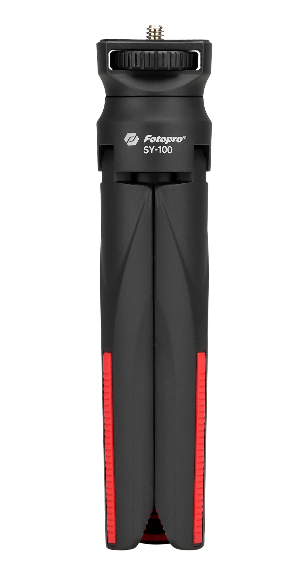 Bazą statywu Fotopro SY-100 z uchwytem SJ-86 Pro są trzy rozkładane nóżki. Zabezpieczono je gumową okładziną, która skutecznie ochroni całą konstrukcję przed przypadkowym przemieszczeniem, podczas pracy na gładkich powierzchniach. Wewnątrz statywu umieszczono wysuwaną kolumnę centralną. Dzięki niej wysokość urządzenia może wynieść nawet 37,4 cm. Po złożeniu statyw z łatwością zmieścisz w niemal każdym filmowym plecaku lub torbie!