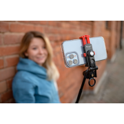 Nie musisz tracić czasu na przenoszenie i ustawianie pojedynczych elementów Twojego filmowo-fotograficznego stanowiska pracy. Uchwyt na smartfon z dodatkowym punktem montażu w postaci żeńskiego gwintu 1/4" to wszystko, czego potrzebujesz, aby wygodnie dostosować kadry do Twoich potrzeb, skorzystać z dodatkowego akcesorium i optymalnie zagospodarować otaczającą Cię przestrzeń, która czasami bywa bardzo ograniczona. Sięgnij po dodatkowy mikrofon, lampę LED lub kamerę sportową i twórz jeszcze lepsze filmy!