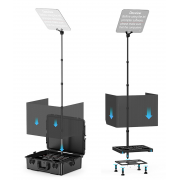 Desview TP300 to konstrukcja, którą często nazywa się teleprompterem prezydenckim. Urządzenie zaprojektowano z myślą o wystąpieniach publicznych i nagraniach na żywo. Wyposażony w przezroczystą taflę szkła o wysokiej przepuszczalności światła, pozwala prezenterom utrzymać naturalny kontakt wzrokowy z widzami, jednocześnie mając w zasięgu wzroku swoje przemówienie lub scenariusz. Dzięki przemyślanej konstrukcji i przenośnej walizce Desview TP300 jest gotowy do pracy w zaledwie 60 sekund. Dołączony do zestawu monitor o przekątnej 19” (jasność 1000 nitów) zapewnia doskonałą czytelność nawet w intensywnym oświetleniu. Urządzenie obsługuje porty HDMI, SDI i USB, a pilot Bluetooth oraz aplikacja mobilna umożliwiają zdalne sterowanie tekstem.