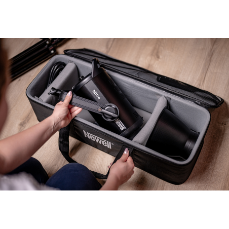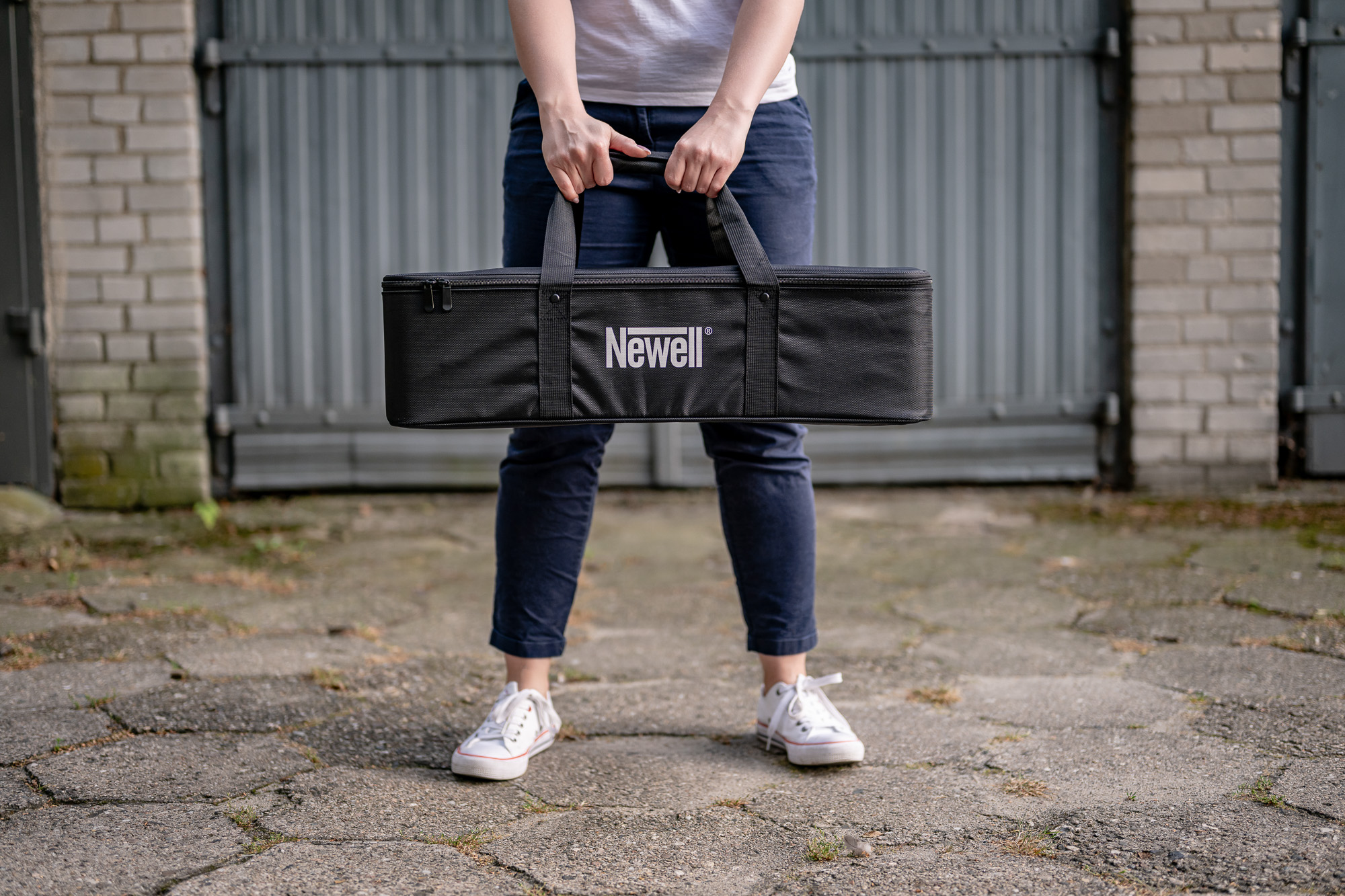 Torba powstała z myślą o lampach Newell Mitra oraz Surja, ale jej uniwersalna konstrukcja sprawia, że sprawdzi się również w przypadku setek innych urządzeń, które wykorzystujesz podczas pracy nad projektami foto-video. Wewnątrz bez problemu zmieścisz także mniejsze panele LED, a także inny sprzęt filmowy lub fotograficzny. Torba pozwala wygodnie spakować niezbędny zestaw narzędzi. To idealne rozwiązanie dla twórców, którzy często pracują w różnych lokalizacjach lub chcą stworzyć mobilny oświetleniowy niezbędnik.