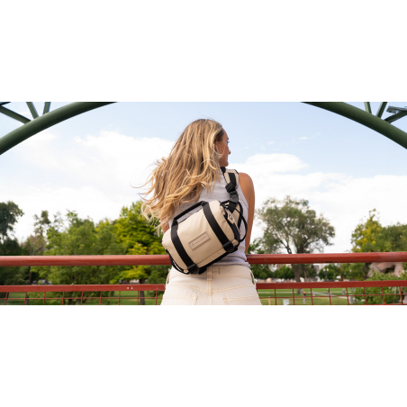 Wandrd Rogue Sling 4 l v2 to torba, którą nosisz tak, jak Ci najwygodniej – na plecach, z przodu lub na biodrze. Możesz też złapać za jeden z trzech uchwytów i po prostu przenosić ją w ręku. 5-punktowy system regulacji pasków pozwala idealnie dopasować jej pozycję do Twojej sylwetki i towarzyszących Ci aktywności. Jeśli potrzebujesz dodatkowej stabilizacji – np. na rowerze lub podczas biegu – wystarczy skorzystać ze specjalnego ukrytego paska, który sprawi, że torba będzie lepiej przylegać do ciała.