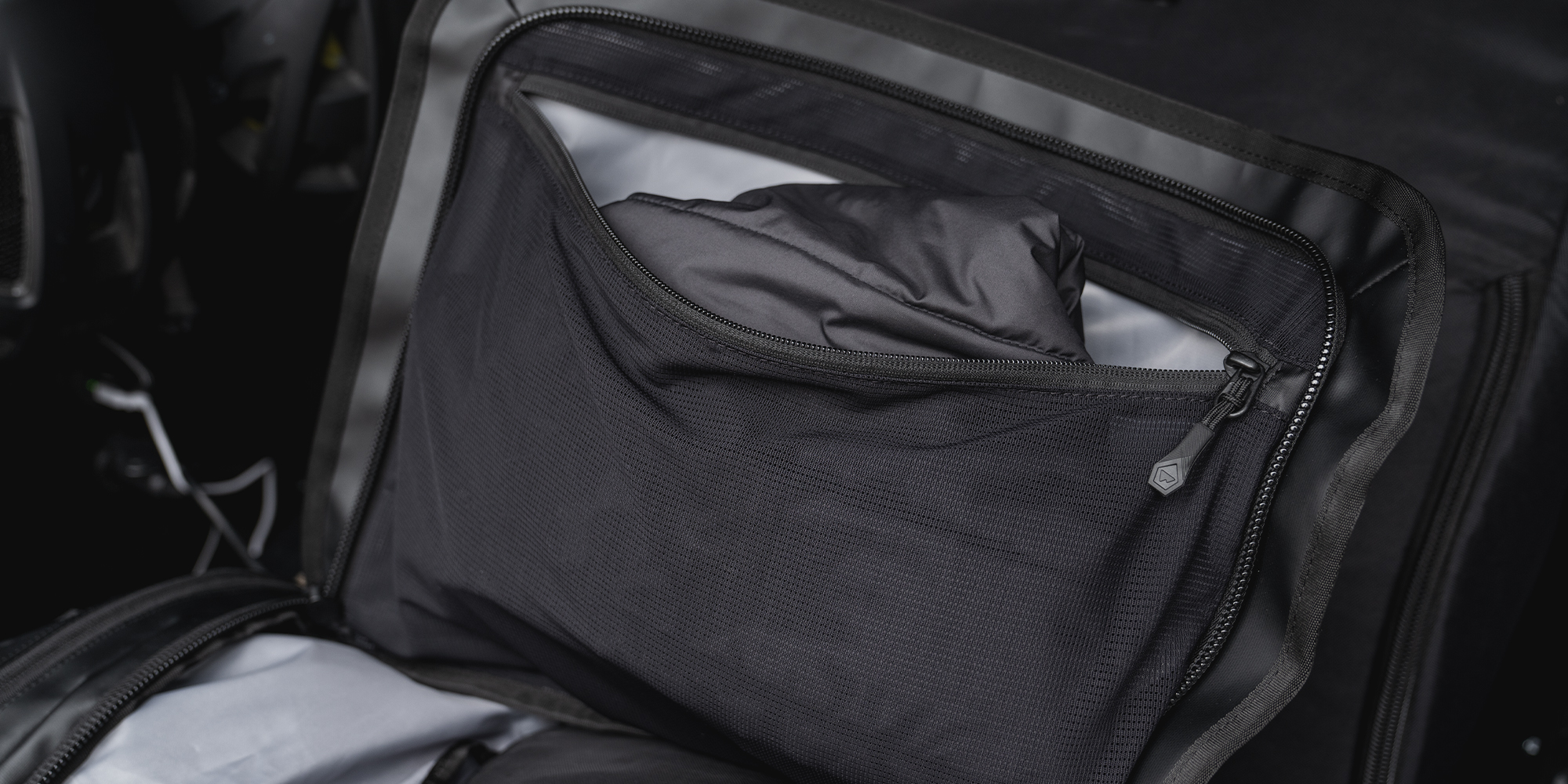 Przemyślany układ kieszeni pozwala szybko i wygodnie uporządkować zawartość torby Wandrd Carryall Duffel 40 l. Duża komora główna, przestrzeń na buty lub brudne ubrania, mniejsza kieszeń na drobiazgi i schowek ułatwiają szybki dostęp do najpotrzebniejszych rzeczy. Wewnątrz torby znajdziesz też pojemną kieszeń z siatki oraz dyskretną przegrodę na lokalizator AirTag.