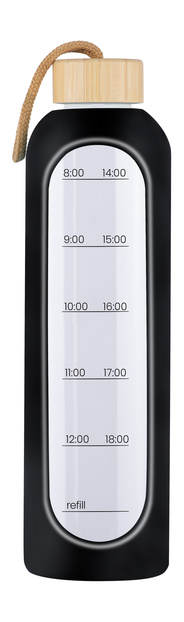 KiCA Hydro Glass to nie tylko butelka, ale także Twój prywatny asystent pomagający dbać o odpowiednie nawodnienie. Na szkło została naniesiona specjalna z oznaczeniami godzin – od 8:00 do 12:00 oraz od 14:00 do 18:00. Dzięki temu jeden rzut oka wystarczy, aby sprawdzić, czy wypiłeś(-aś) odpowiednią ilość wody. Przekroczenie poziomu "refill" skutecznie przypomni o konieczności ponownego napełnienia butelki. To sprytne rozwiązanie sprawia, że regularne nawadnianie staje się prostym nawykiem, który wspiera Twoje zdrowie.